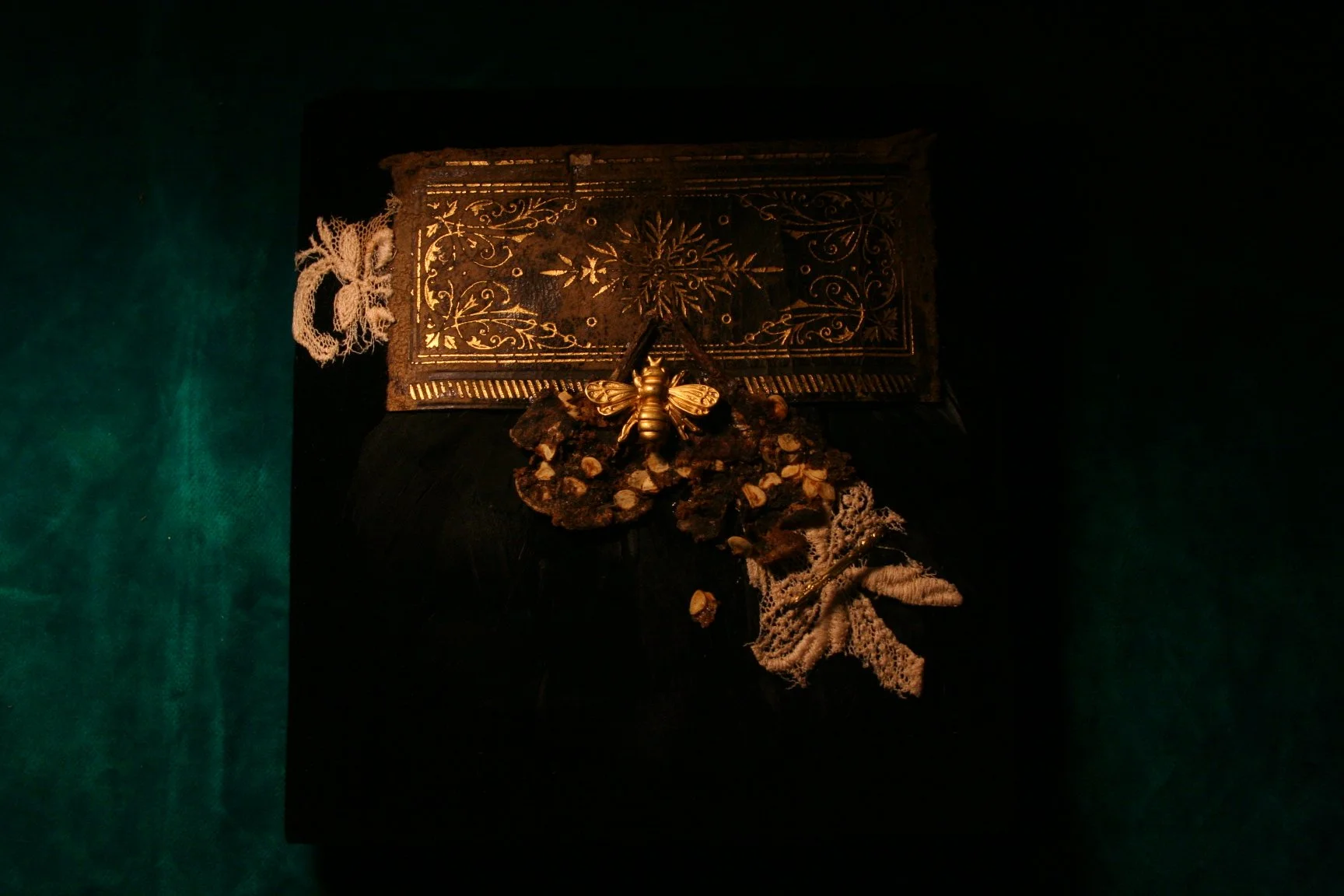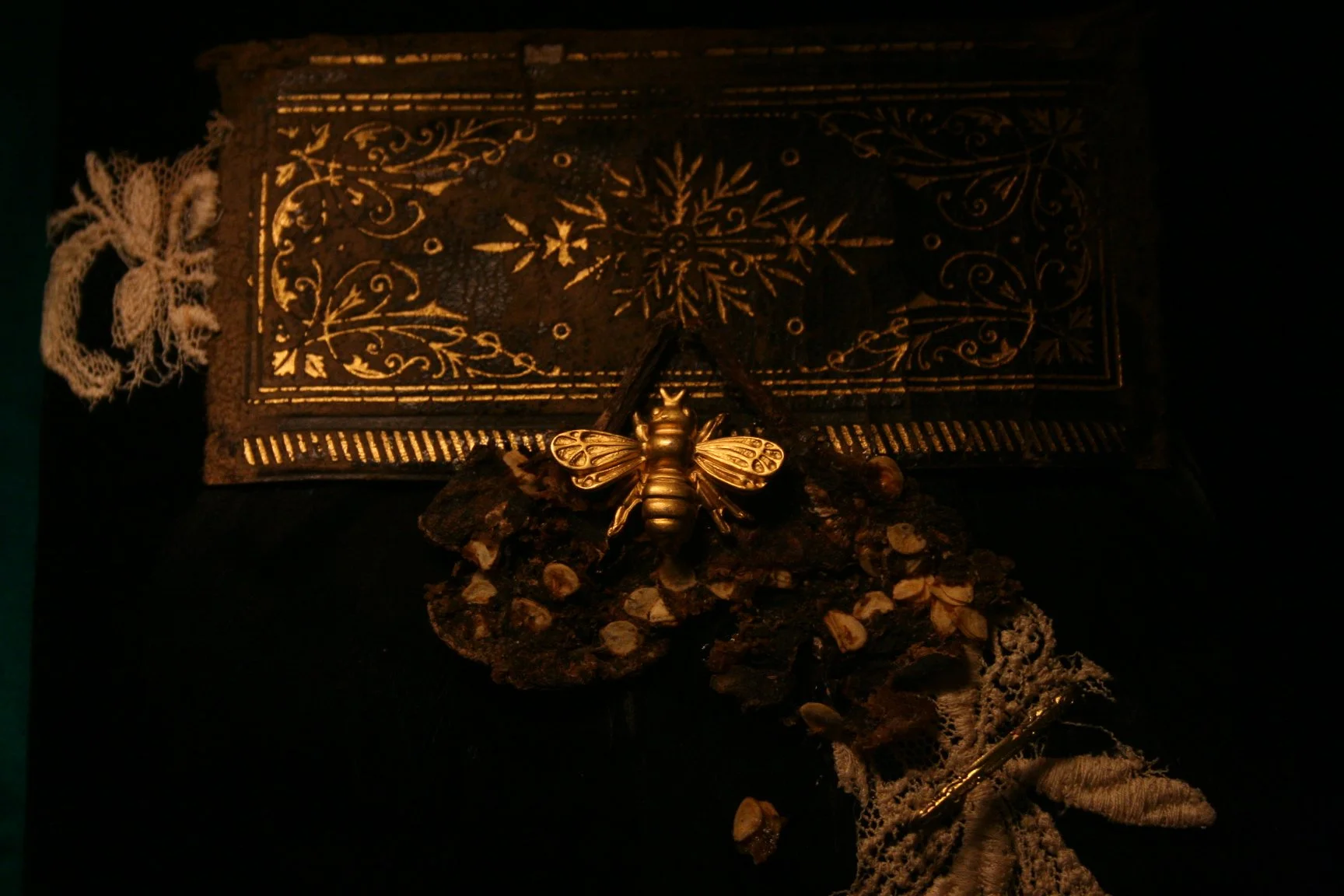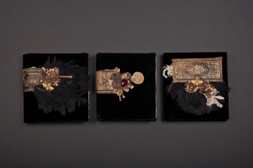 M. Laird, 2009.Pencil, paper, leather, fruit, feathers, shell, velvet, lace, metal, thread. Private collection, Melbourne.